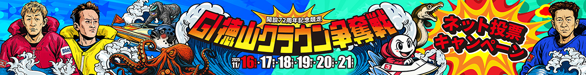 ボートレース徳山の開設72周年記念「G1徳山クラウン争奪戦」が11月16日~21日まで開催される。秋の徳山に全国からトップレーサーが集結。激戦を制して栄光のクラウンをかぶるのは誰になるのか。