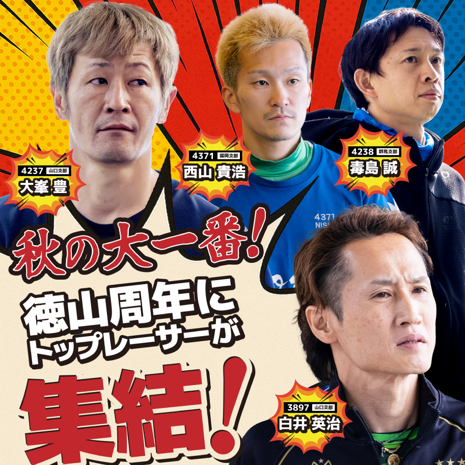 地元のエースを担うのは白井英治だ。8月に若松でのボートレースメモリアルで優勝。4回目のSG制覇を果たした。現在賞金ランキングは10位。3年ぶり11回目のグランプリ出場は当確だ。ただ白井はこの徳山周年のあとF休みに入るためSGチャレンジカップは欠場。賞金ランキングが下がってしまう可能性が高いだけに、トライアルの枠番を考えると徳山周年で大きな賞金を上積みしてランクアップしてから休みに入りたいところだ。08年と22年に続く3回目の徳山周年優勝をめざす。