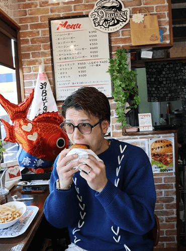 「食事でイカを食べにいくなら玄洋がお勧め。唐津バーガーも有名ですが、僕的には『39バーガー』が好きですね。(現店舗)お店ができたのはここ2、3年だと思いますが、サイズ感もちょうどいいし、ポテトもボリュームがあって美味しい。ちょうど呼子に行く通り道で、39バーガーを買って車の中で食べながらドライブするのもいいと思います。ハンバーガーと言えば、僕はここ一択です」