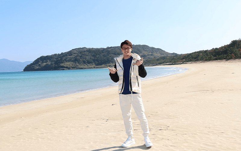「やっぱり海も山も川もあって、自然がいっぱいある。ご飯も美味しいところでしょう。海に泳ぎに行くなら北浜(湊町)です。すごくきれいで唐津のハワイと言われています。本当に唐津のワイキキビーチという感じです。遠浅なので小さな子供連れでも安心して海水浴ができますよ。観光なら唐津城、鏡山の展望台。『唐津くんち』の曳山(ひきやま)が飾ってある曳山展示場も観光スポット。自分は鯛山で参加していますが、やっぱり唐津に住んでいたら『唐津くんち』は憧れると思いますよ。街中を歩き回るのはすごく疲れますが、見物人の数も多くて、すごく盛り上がる。レースとの兼ね合いはありますが、できることなら参加したい。唐津城には小学校の遠足で行ってました」